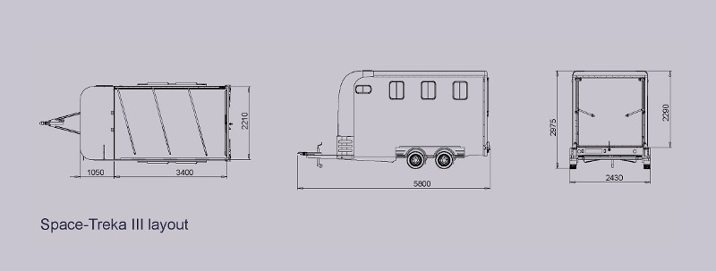 The Space-Treka III carries up to three horses or four ponies (depending on size and weight) whilst remaining compact and easy to tow.
